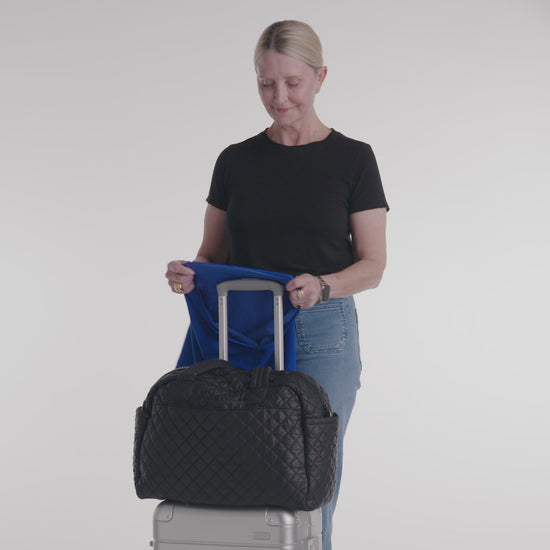 Holds your bag securely in place while walking, stopping, and navigating crowded terminals (or parking lots).